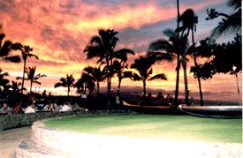 The evening sunset was spectacular at the luau. A raised stage awaited the performance of the evening.